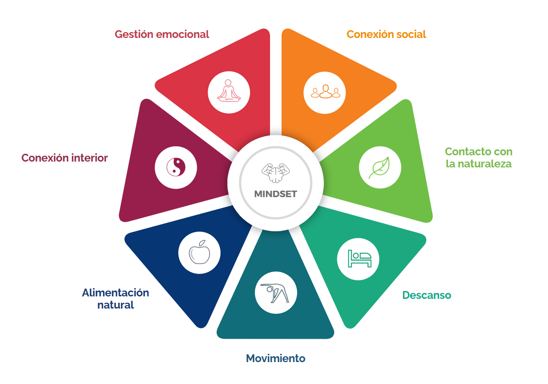 Detrás del método NATURAfit se encuentra un modelo de salud propio que integra las 7 áreas de la salud necesarias para despertar el poder curativo del cuerpo y construir una vida sana, plena y feliz: